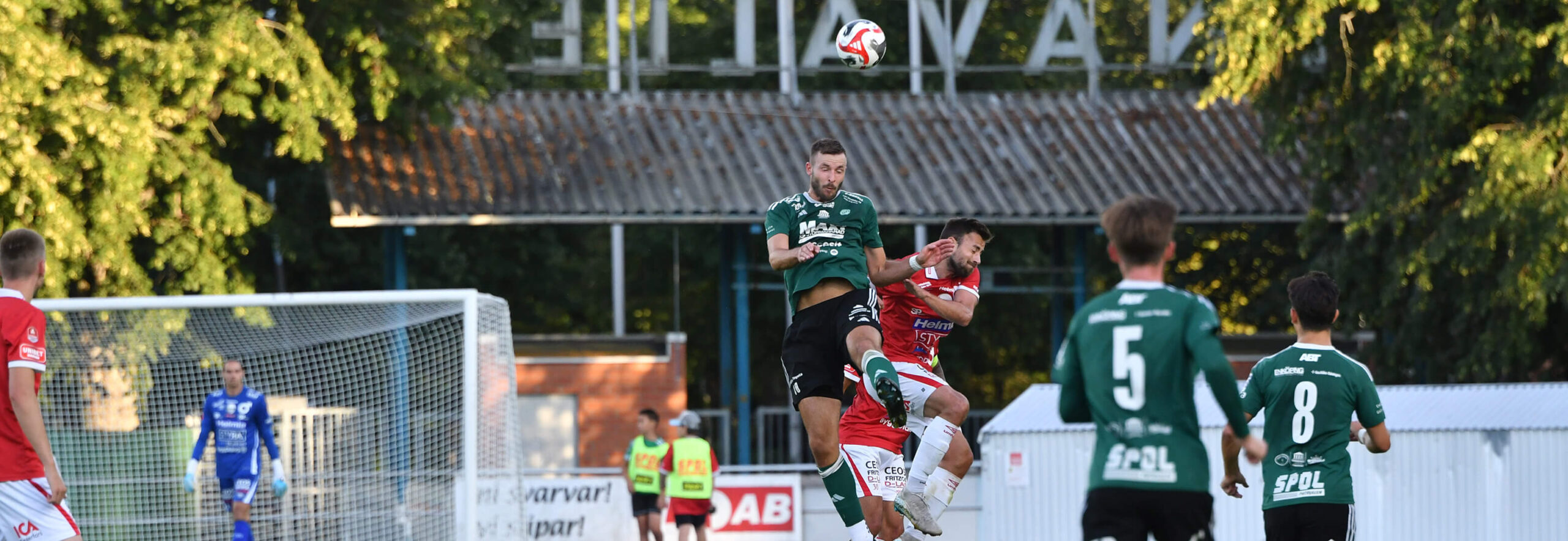 Banderollerna ställs på löparbanorna under våra hemmamatcher och syns bra från huvudläktaren.