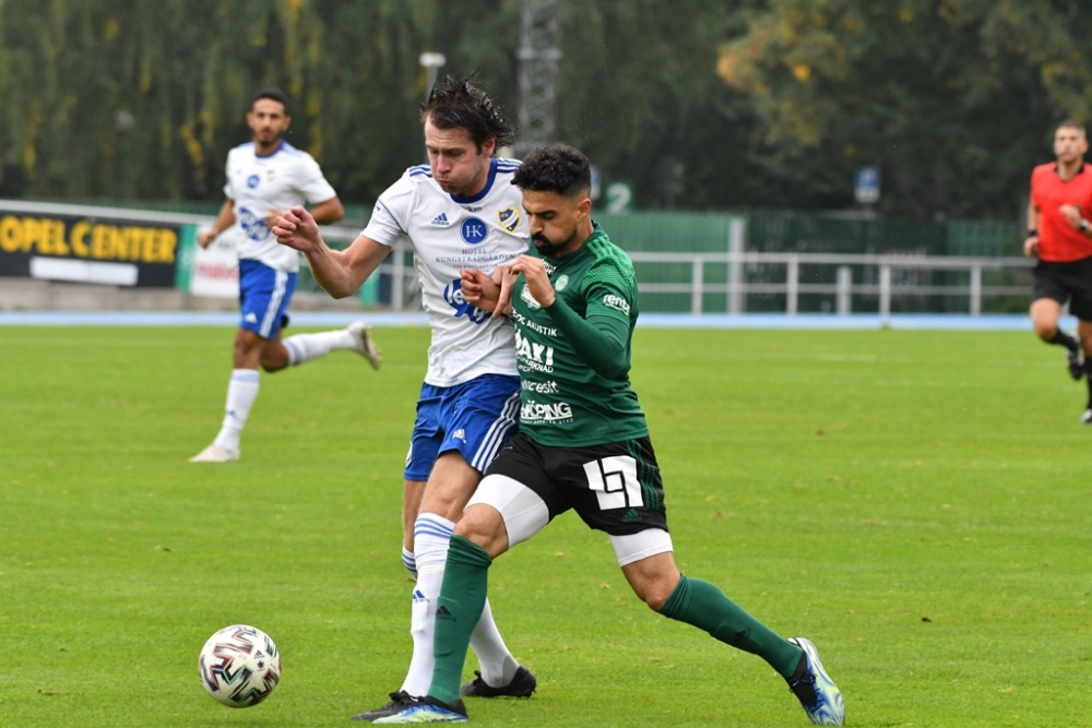 Calle Siljander slår ett perfekt inlägg till Alan Naib, som i kamp med två mittbackar får kontroll på bollen och hinner före målvakten Hugo Claesson och tåar bollen i nät.