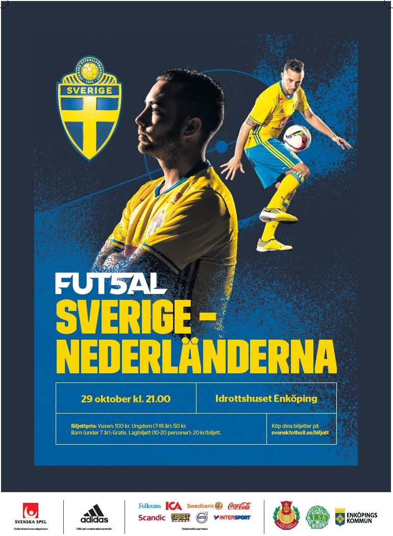 Den 29 oktober möter Svenska landslaget i futsal Nederländerna, matchen spelas i Idrottshuset i Enköping.
